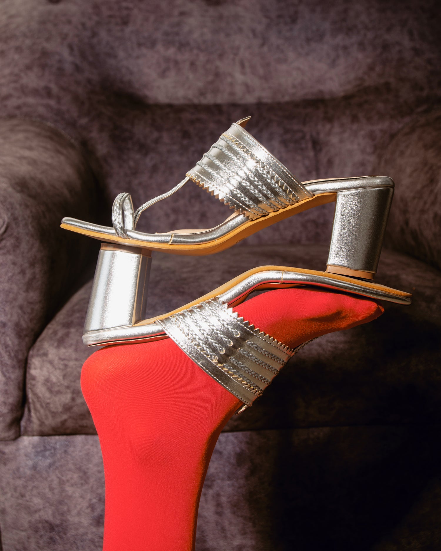 Gray & White Strapped Heels| block heels| MultiStrapped|Lightweight