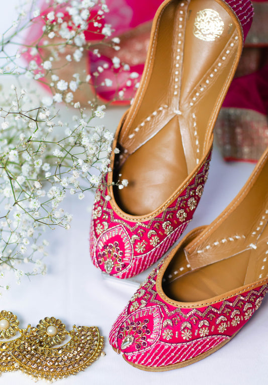 Hot Pink Bridal Juttis - Pink Bridal Wedding Juttis