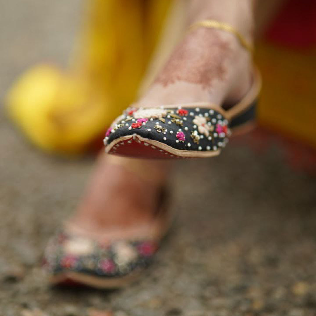 Black handworked juttis